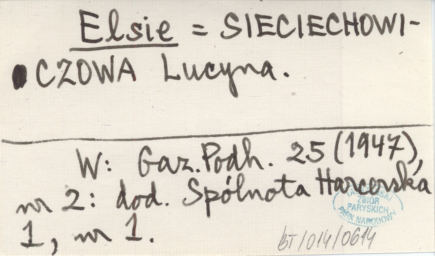 Elsie SIECIECHOWICZOWA Lucyna Gazeta Podhalańska 25 (1947), nr 2: dod. Spólnota Harcerska 1, nr 1.
