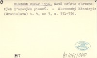 ELSCHEK Oskar 1956 Nová edícia slovenských µudových piesní.