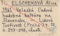ELSCHEKOVÁ Alica 1961 Valaská µudová hudobná kulturá na Slovensku.
