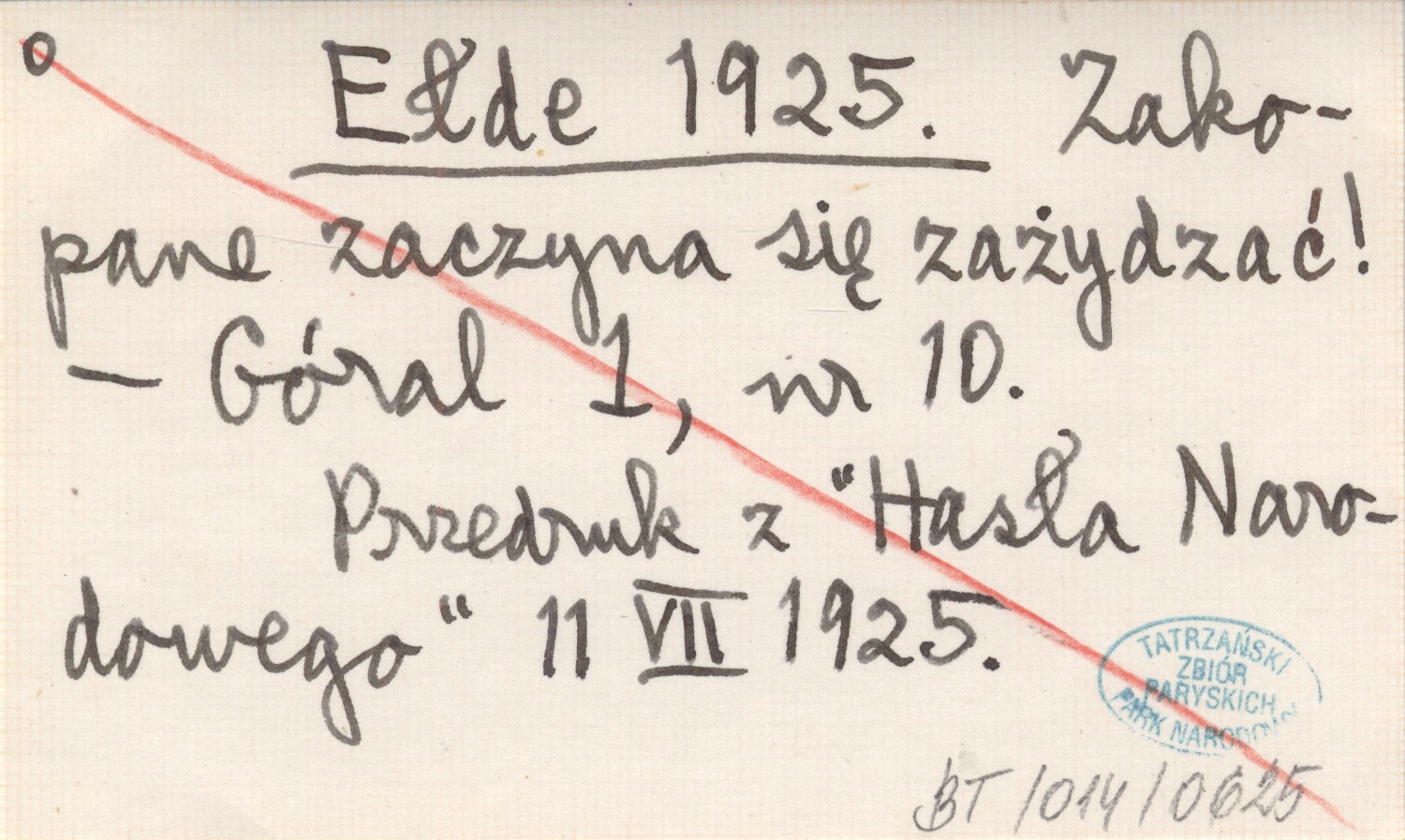 Góral, 1, nr 10. Przedruk z "Hasła Narodowego" 11 VII 1925.