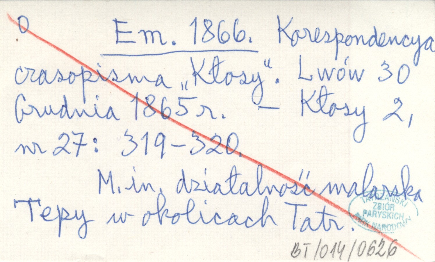 Em. 1866 Korespondencya czasopisma "Kłosy". Lwów 30 Grudnia 1865 r.