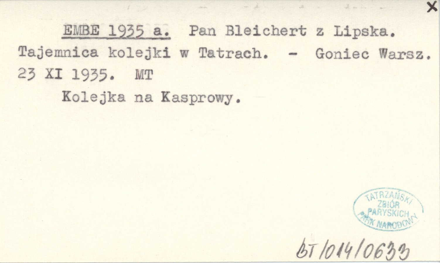 EMBE 1935 a Pan Bleichert z Lipska. Tajemnica kolejki w Tatrach.