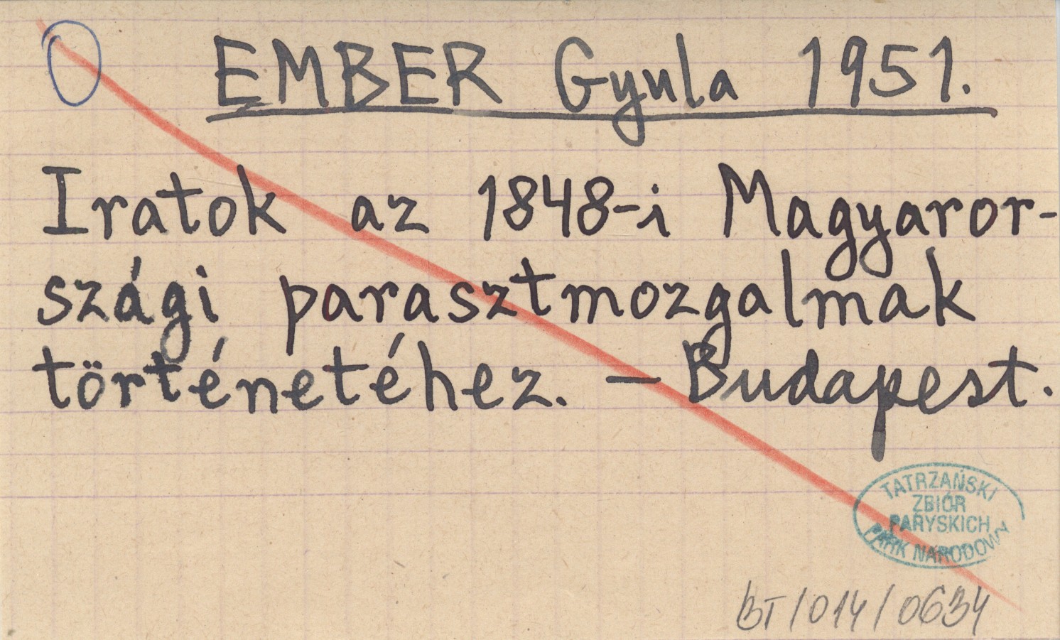 EMBER Gyula 1951 Iratok az 1848-i Magyarországi parasztmozgalmak történetéhez.