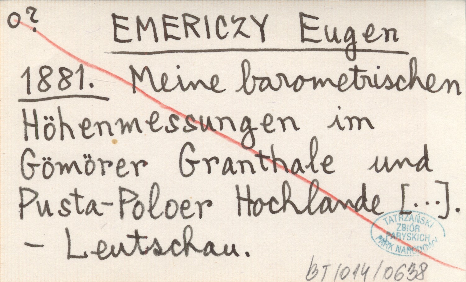 EMERICZY Eugen 1881 Meine barometrischen Höhenmessungen im Gömörer Granthale und Pusta-Poloer Hochlande [...].