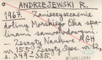 ANDRZEJEWSKI R. 1967 Zanieczyszczenie doliny Morskiego Oka spalinami samochodowymi.