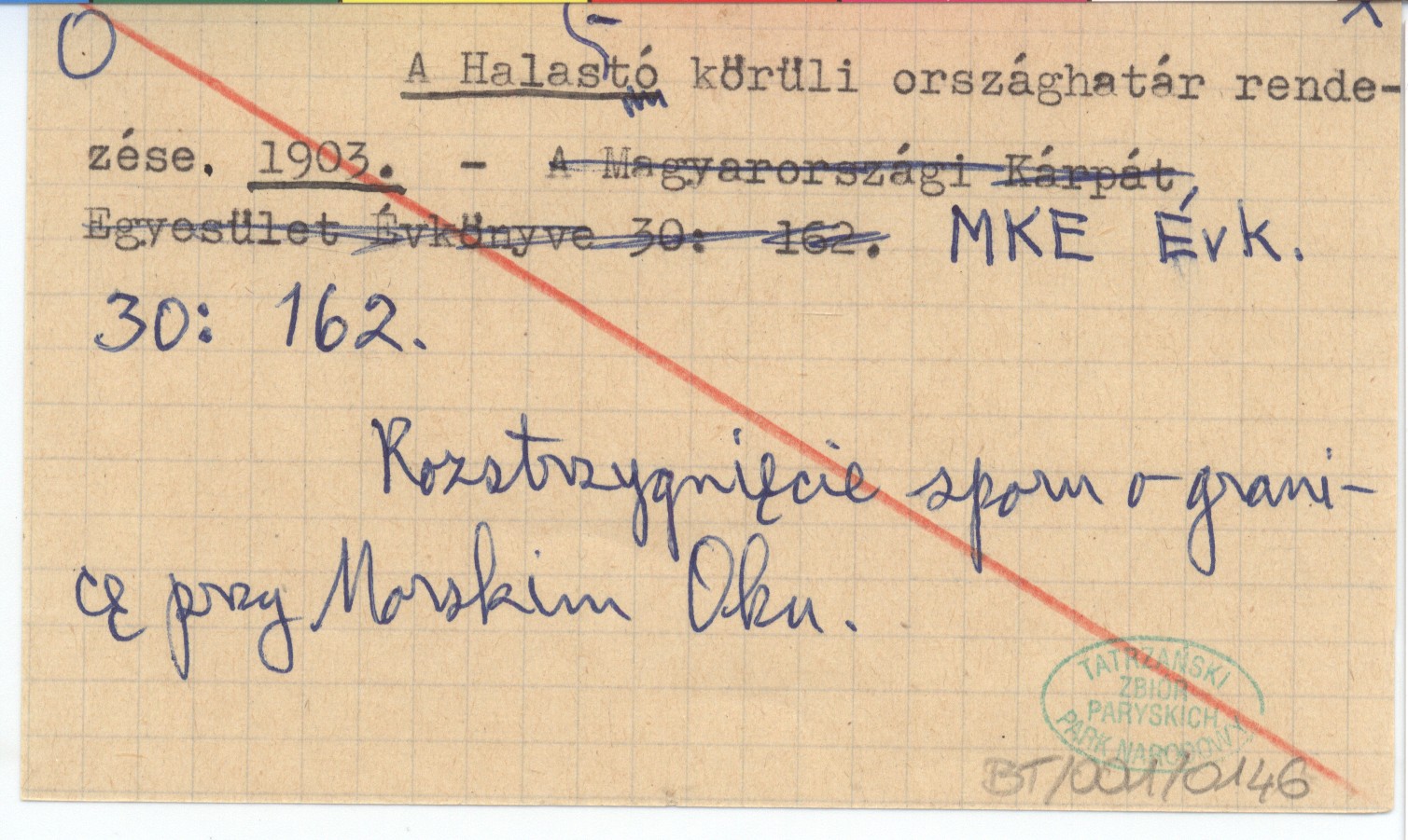 Magyarországi Kárpátegyesület Évkönyve, 30: 162. Rozstrzygnięcie sporu o granicę przy Morskim Oku.