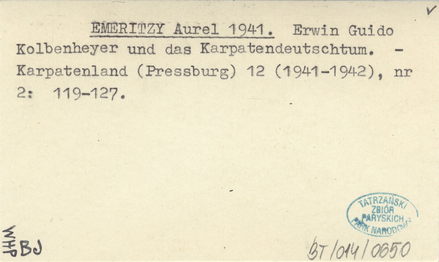 EMERITZY Aurel 1941 Erwin Guido Kolbenheyer und das Karpatendeutschtum.