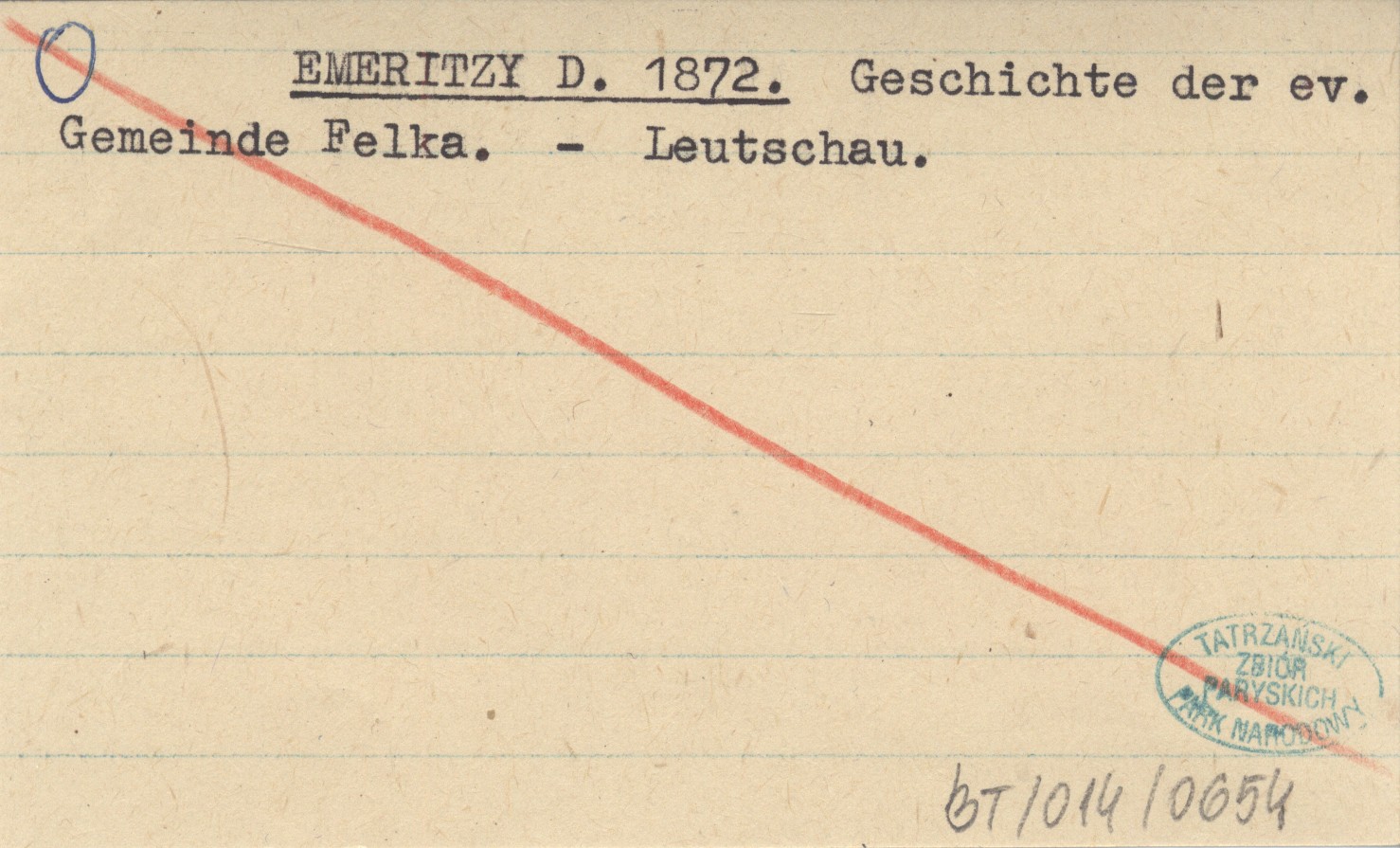 EMERITZY D. 1872 Geschichte der ev. Gemeinde Felka.