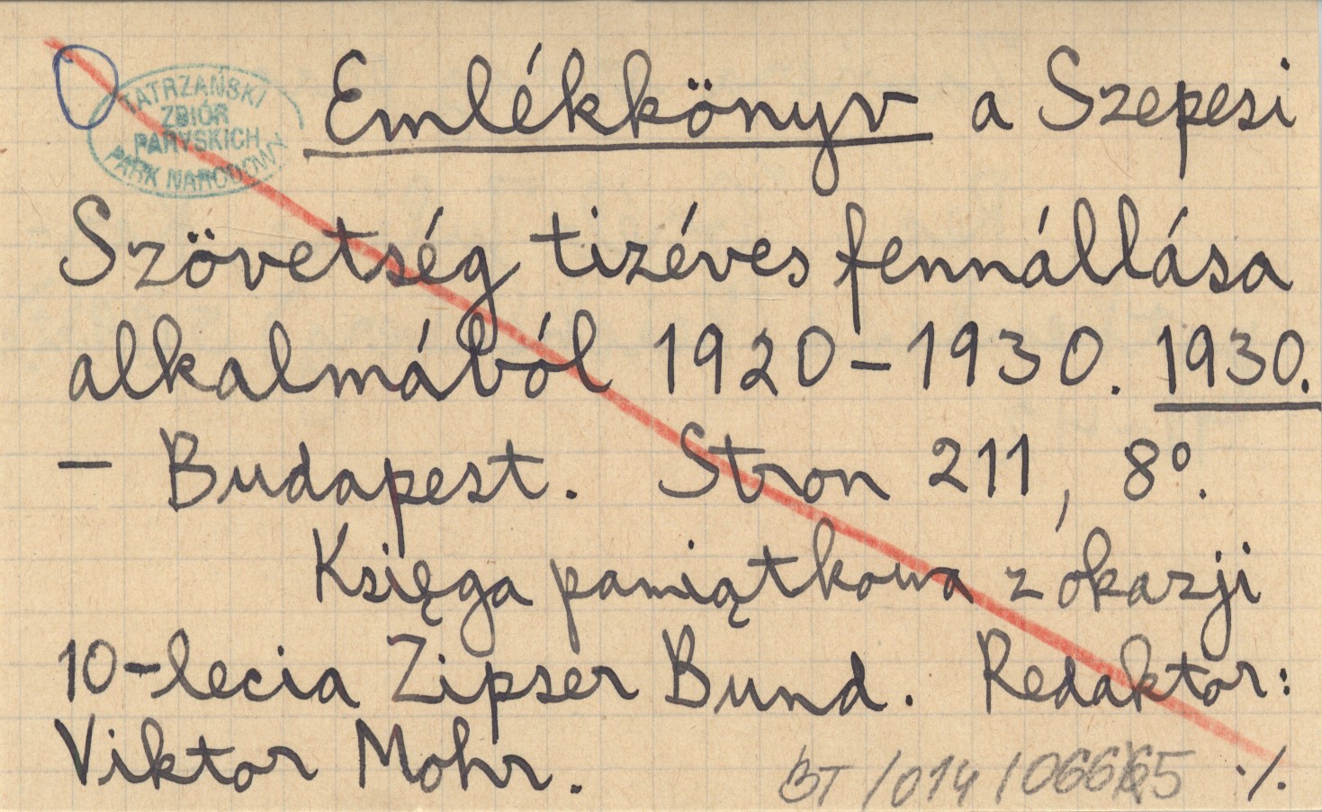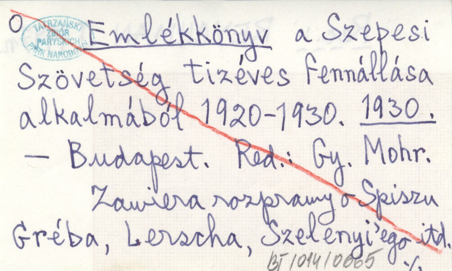Budapest , 211 s., 8°. Zawiera rozprawy o Spiszu Gréba, Lerscha, Szelenyi'ego itd. Księga pami±tkowa z okazji 10-lecia Zipser Bund. REC: REYCHMAN J. 1947 n