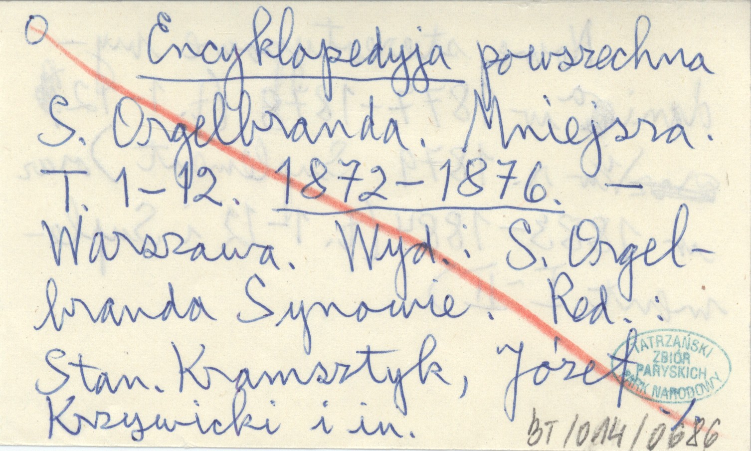 RED: KRAMSZTYK, Stanisław. ; KRZYWICKI, Józef. ; i in. ; Encyklopedya powszechna S. Orgelbranda. Mniejsza. T. 1-12. 1872-1876