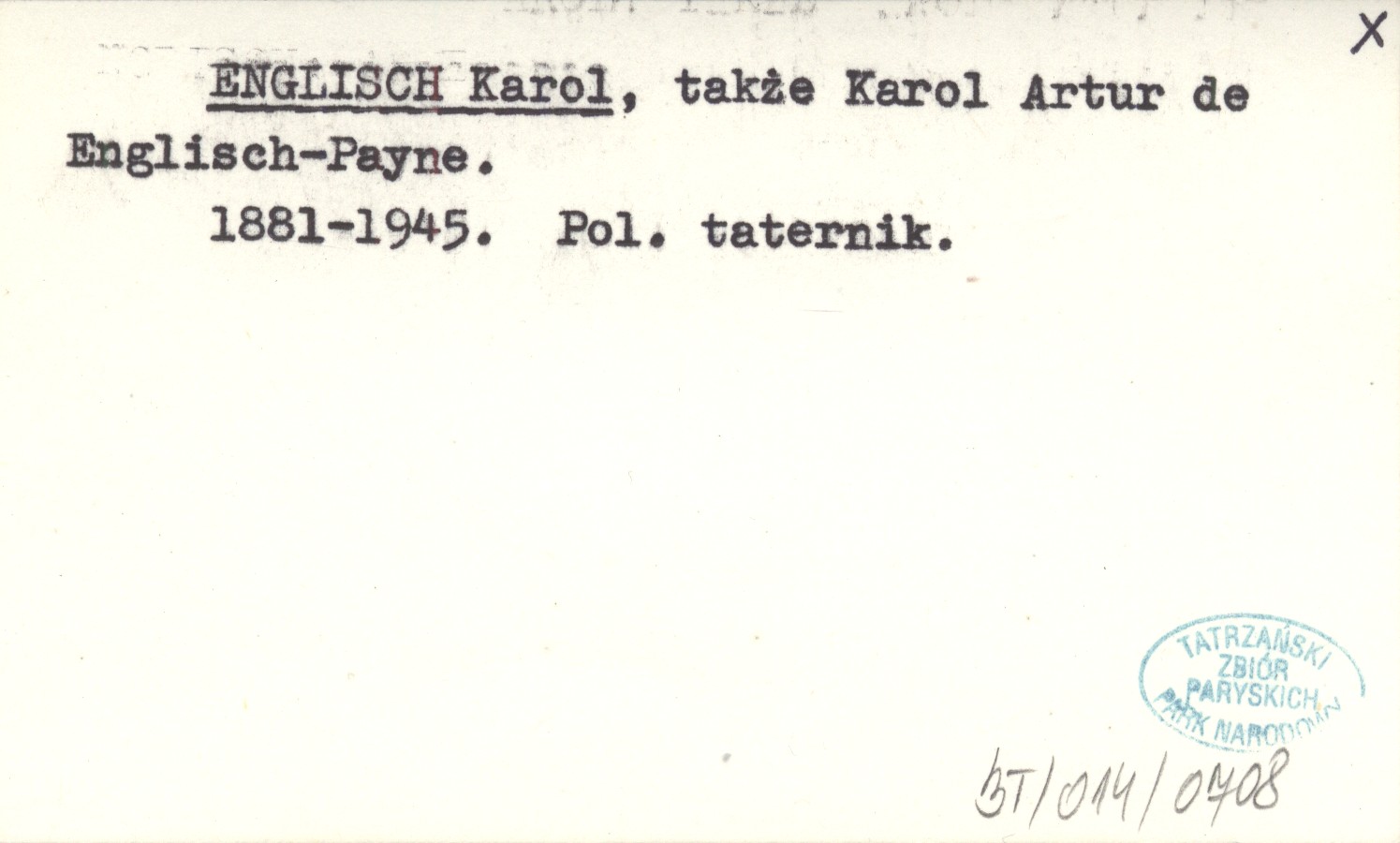 Także Karol Artur de Englisch-Payne. 1881-1945. Polski taternik.