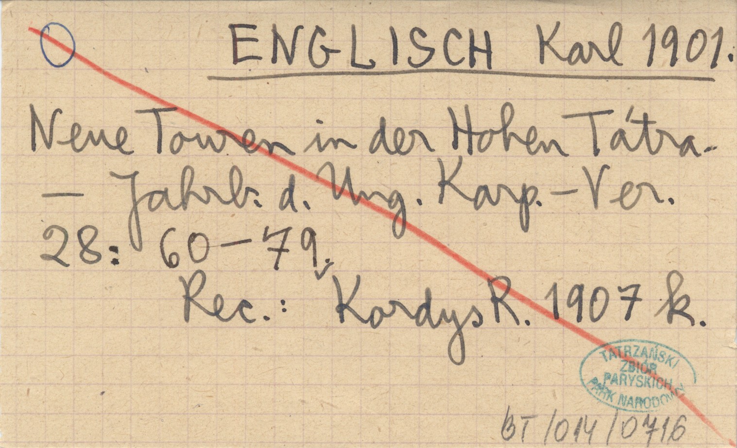 Jahrbuch des Ungarischen Karpathen-Vereines, 28: 60-79. REC: KORDYS R. 1907 k