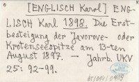ENGLISCH Karl [ENGLISCH Karol] 1898 Die Erstbesteigung der Javorove- oder Krotenseespitze am 13-ten August 1897.