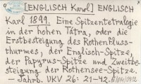 ENGLISCH K. 1899 Csúcs-tetralogia a Magas Tátrában (Englisch-csúcs, Papirusz-csúcs, Vöröstavi-csúcs).