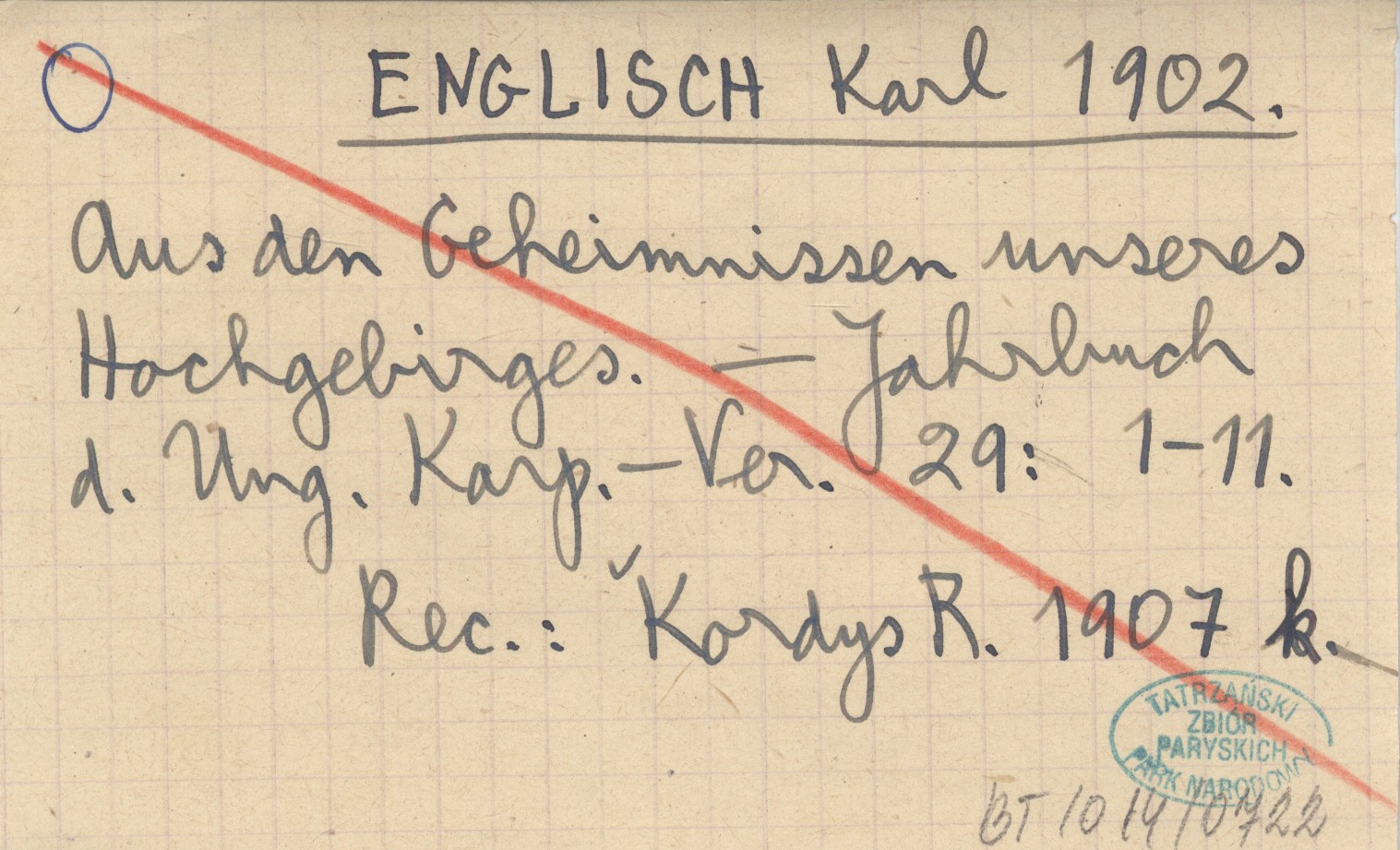Jahrbuch des Ungarischen Karpathen-Vereines, 29: 1-11. REC: KORDYS R. 1907 k