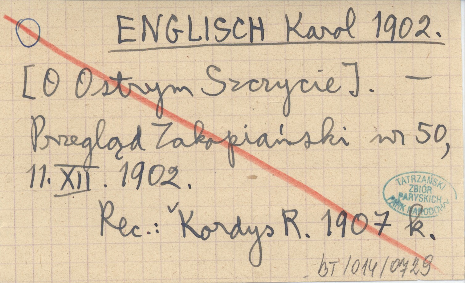 Przegląd Zakopiański, Nr 50 (11 XII 1902). REC: KORDYS R. 1907 k