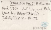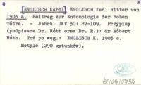 ENGLISCH Karl Ritter von [ENGLISCH Karol] 1903 a Beitrag zur Entomologie der Hohen Tátra.