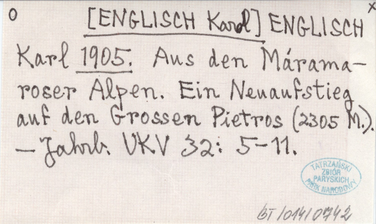 ENGLISCH Karl [ENGLISCH Karol] 1905 Aus den Máramaroser Alpen. Ein Nauaufstieg auf den Grossen Pietros (2305 M.).