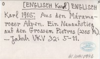 ENGLISCH Karl [ENGLISCH Karol] 1905 Aus den Máramaroser Alpen. Ein Nauaufstieg auf den Grossen Pietros (2305 M.).