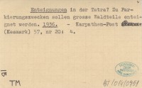 Enteignungen in der Tatra? Zu Parkierungszwecken sollen grosse Waldteile enteignet werden. 1936