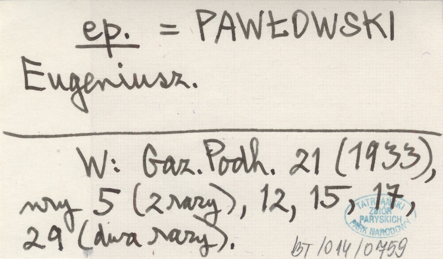 ep. PAWŁOWSKI Eugeniusz Gazeta Podhalańska 21 (1933), nr 5 (2 razy), 12, 15, 17, 29 (dwa razy).