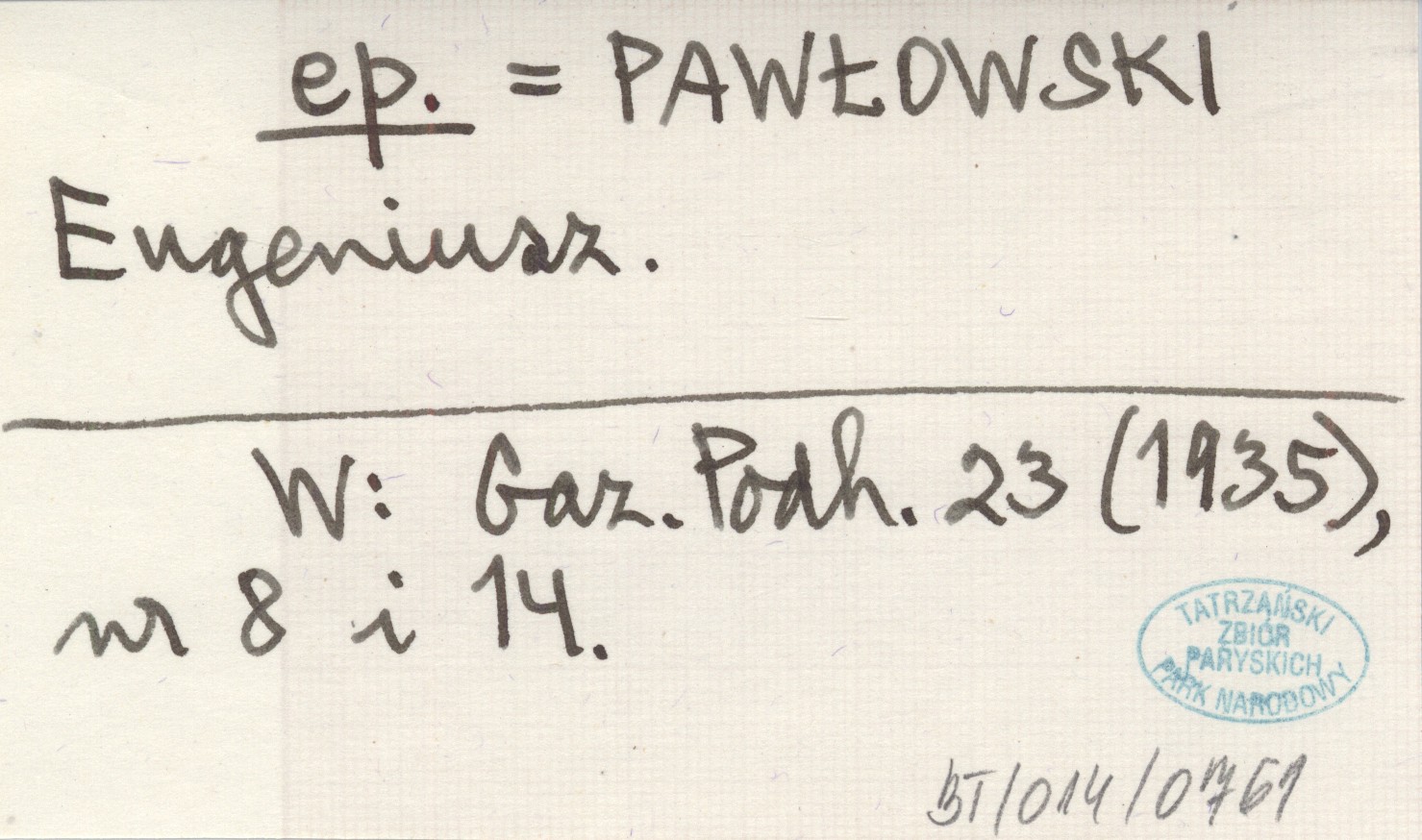 ep. PAWŁOWSKI Eugeniusz Gazeta Podhalańska 23 (1935), nr 8 i 14.