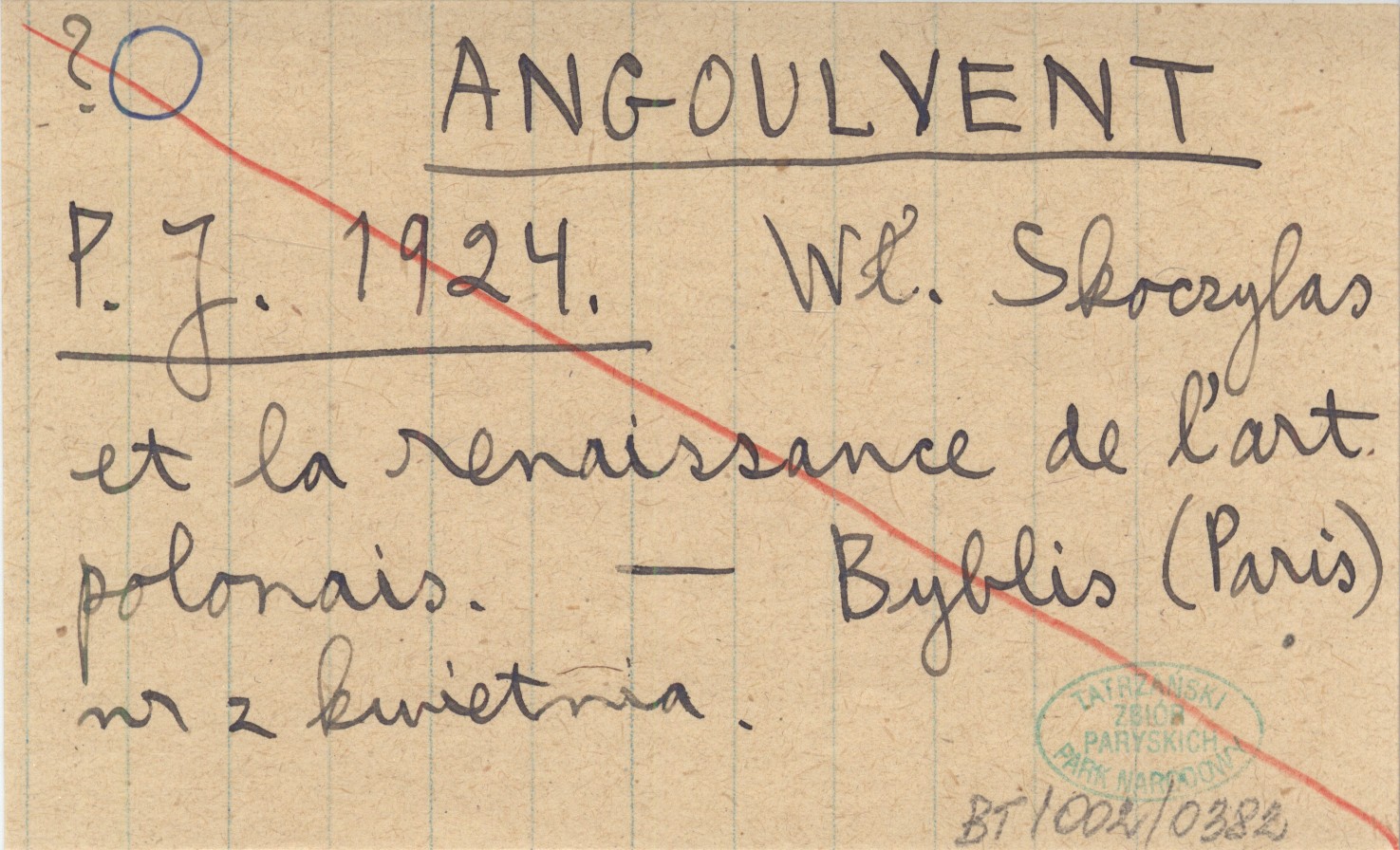 ANGOULVENT P. J. 1924 Wł. Skoczylas et la renaissance de l'art polonais.