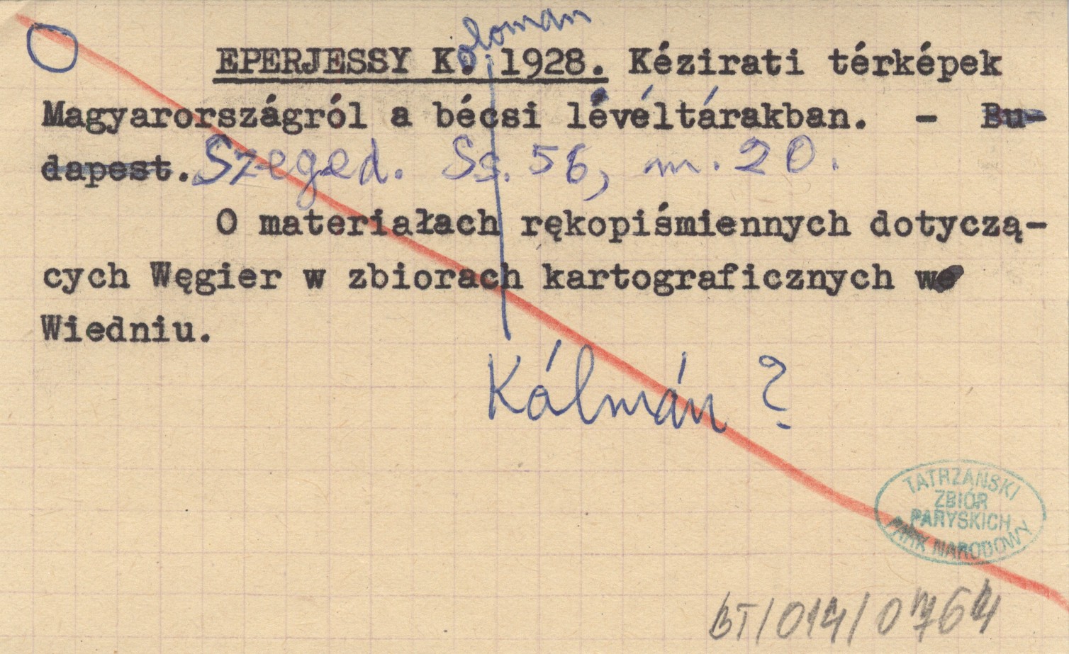 Szeged. , 56 s., 20 map. O materiałach rękopiśmiennych dotyczących Węgier w zbiorach kartograficznych w Wiedniu.