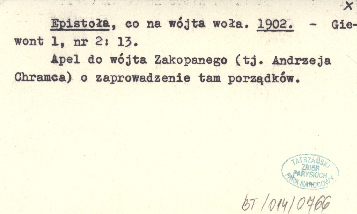 Giewont, 1, nr 2: 13. Apel do wójta Zakopanego (tj. Andrzeja Chramca) o zaprowadzenie tam porządków.