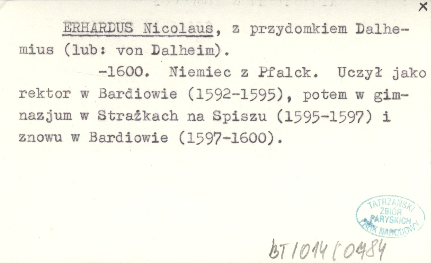 z przydomkiem Dalhemius (lub: von Dalheim). -1600. Niemiec z Pfalck. Uczył jako rektor w Bardiowie (1592-1595), potem w gimnazjum w Strażkach na Spiszu (1595-1597) i znowu w Bardiowie (1597-1600).