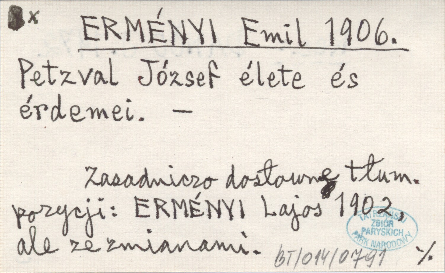 ERMÉNYI Emil 1906 Petzval József élete és érdemei.