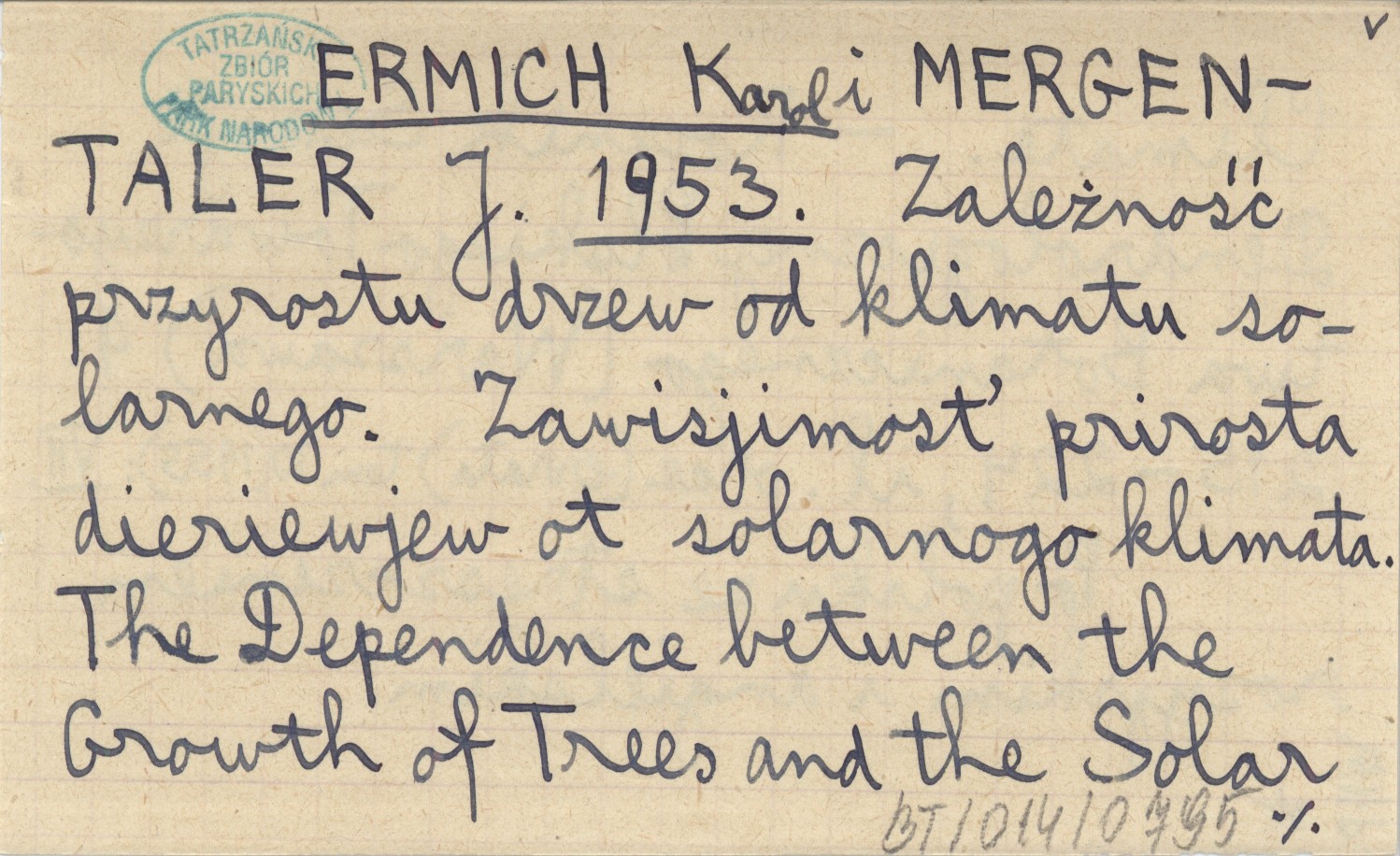 MERGENTALER J. ERMICH Karol 1953 Zależność przyrostu drzew od klimatu solarnego. Zawisjimost' prirosta dieriewjew ot solarnogo klimata. The Dependence between the Growth of Trees and the Solar Climate.