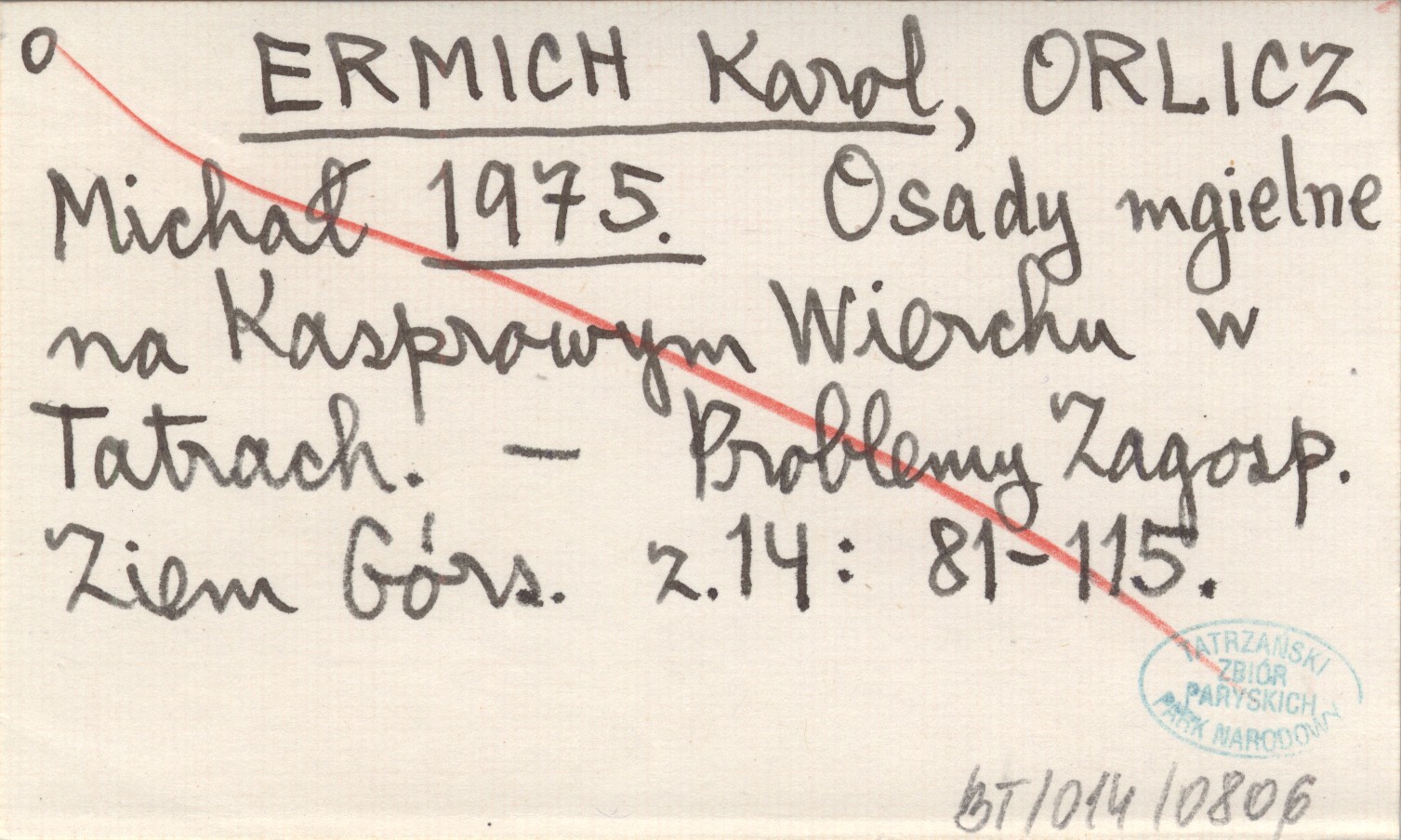 ERMICH Karol ORLICZ, Michał. ; 1975 Osady mgielne na Kasprowym Wierchu w Tatrach.