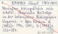 ERNYEY József 1903-1904 Növénytani bibliográfiánk szláv a datai. Slawische Beiträge in der botanischen Bibliographie Ungarns.