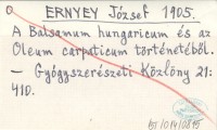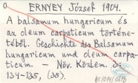 ERNYEY József 1905 A Balsamum hungaricum és az Oleum carpaticum történetéből.
