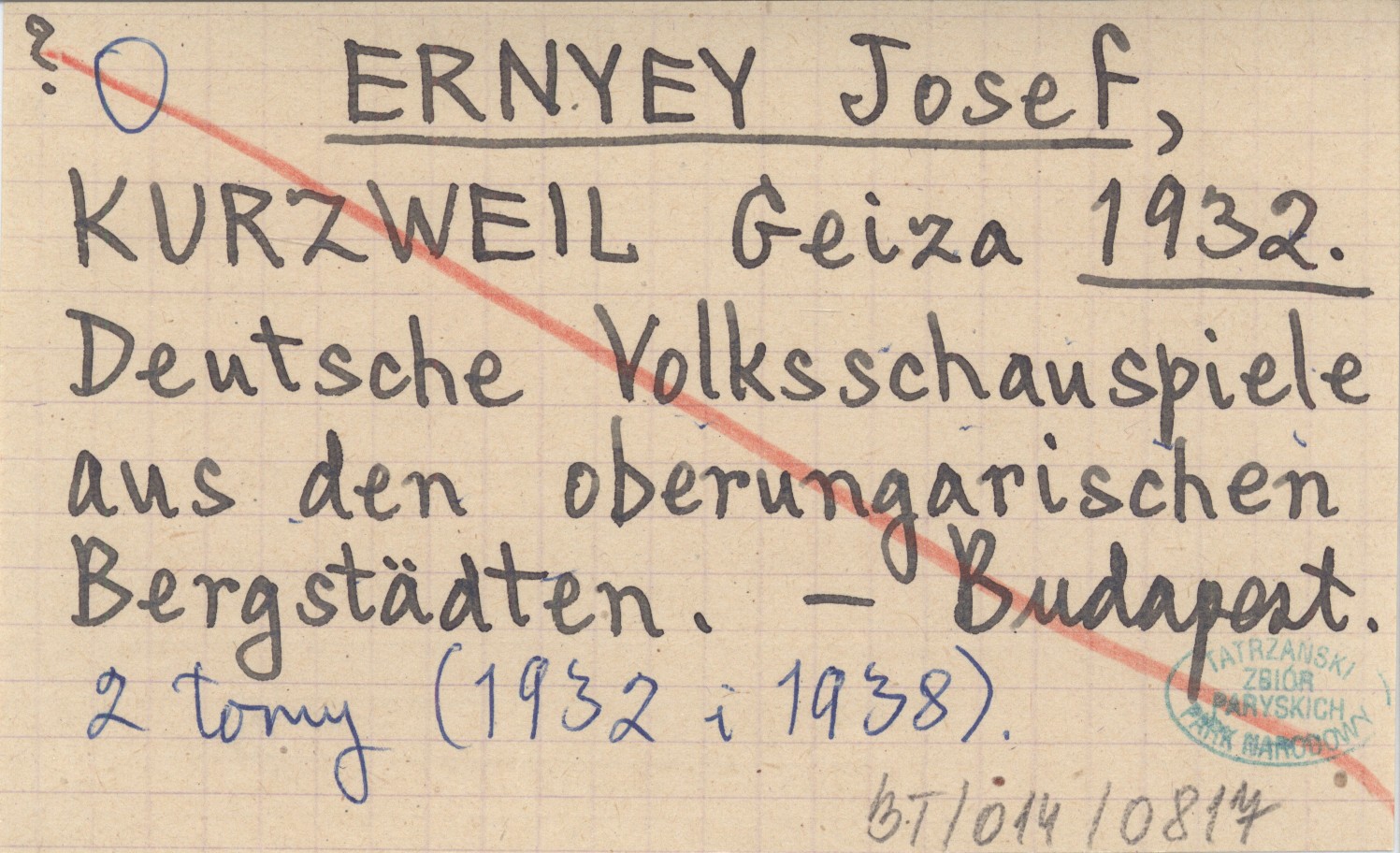 ERNYEY Josef KURZWEIL, Geiza. ; 1932 Deutsche Volksschauspiele aus den oberungarischen Bergstädten.