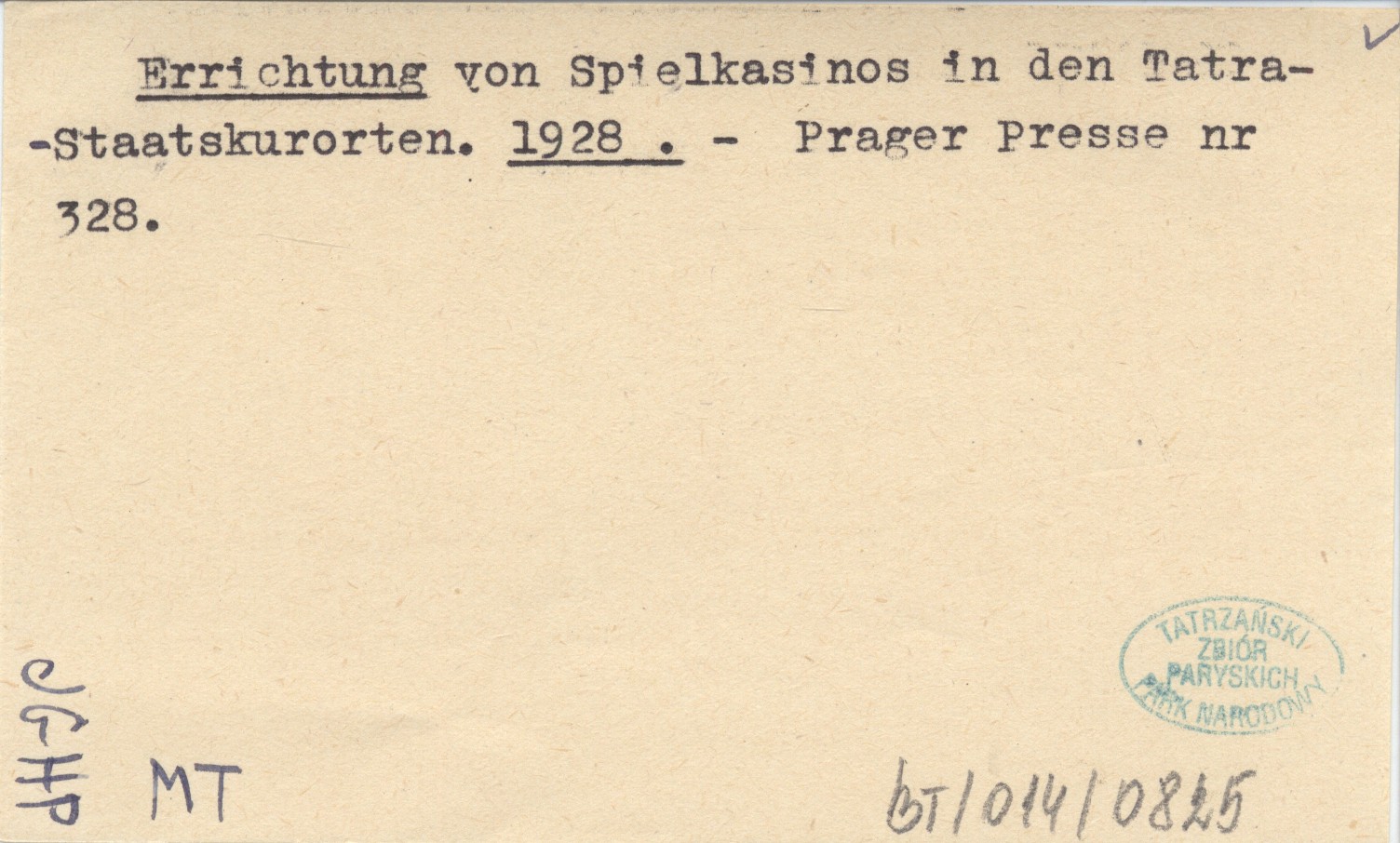 Errichtung von Spielkasinos in den Tatra-Staatskurorten. 1928