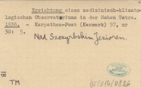 Errichtung eines medizinisch-klimatologischen Observatoriums in der Hohen Tatra. 1936