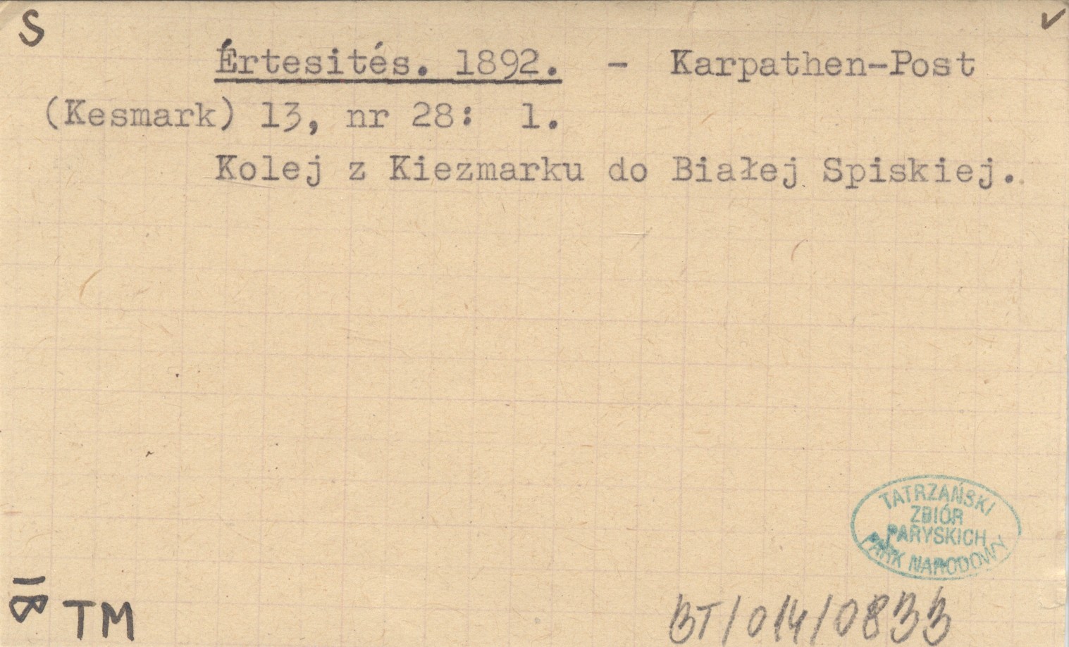 Karpathen-Post (Kesmark) , 13, nr 28: 1. Kolej z Kiezmarku do Białej Spiskiej.
