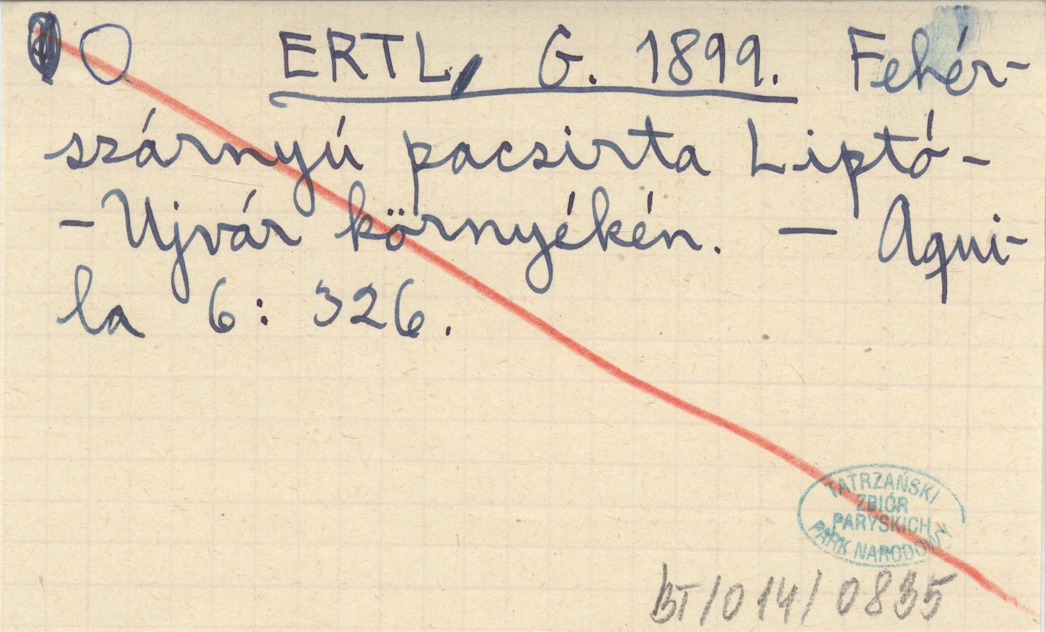 ERTL G. 1899 Fehérszárnyú pacsirta Liptó-Ujvár környékén.