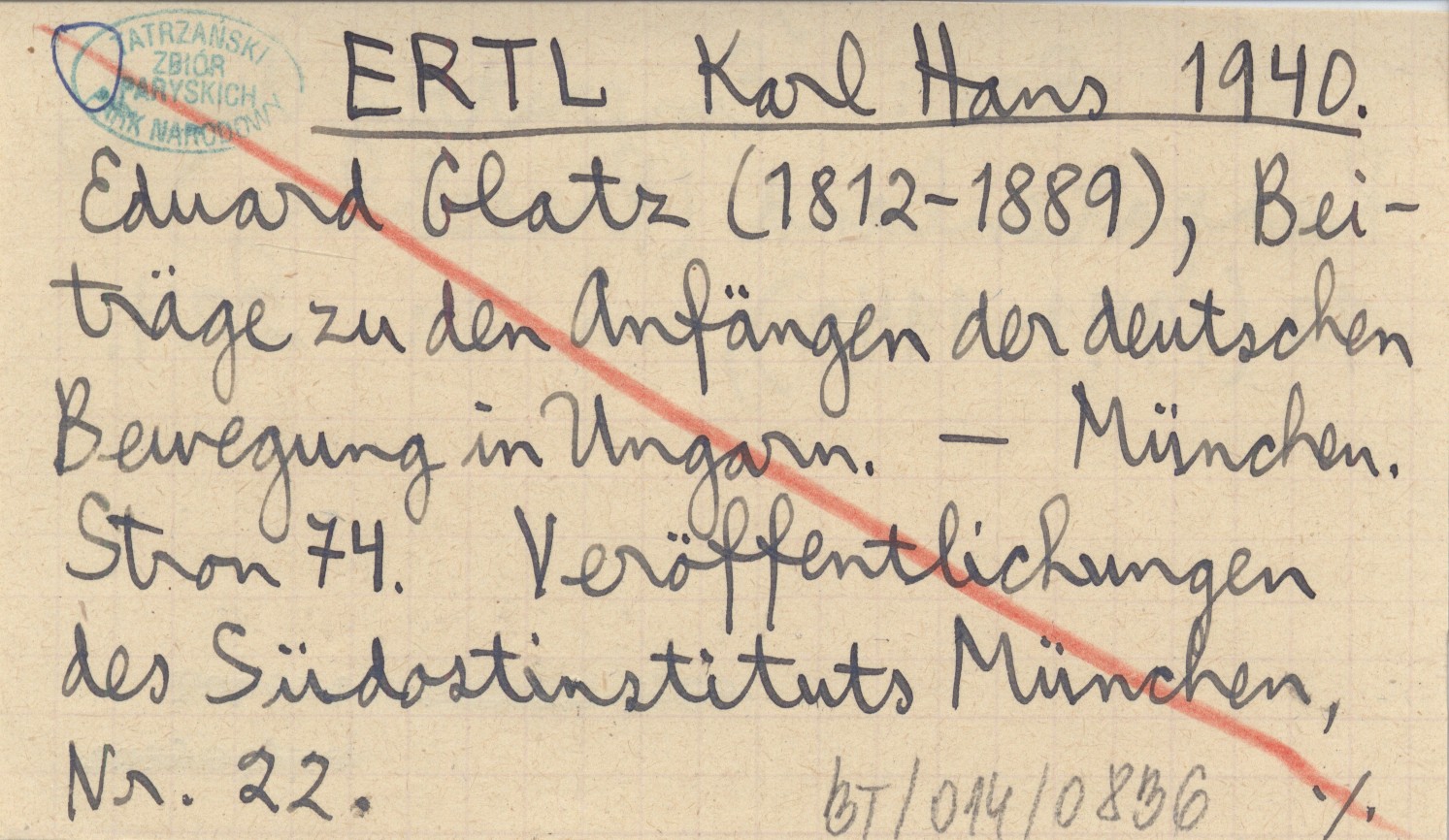 ERTL Karl Hans 1940 Eduard Glatz (1812-1889), Beiträge zu den Anfängen der deutschen Bewegung in Ungarn.