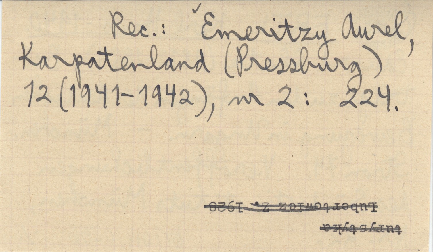 Veröffentlichungen des Südostinstituts München (München) , Nr 22: 74 s. REC: EMERITZY Aurel, Karpatenland (Pressburg) 12 (1941-1942), nr 2: 224.