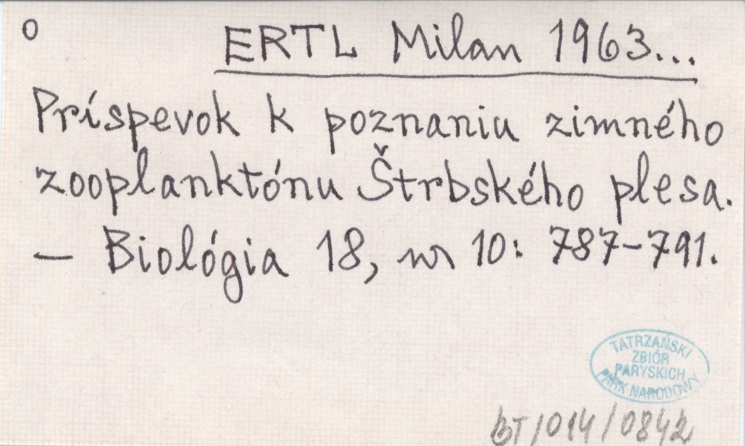 ERTL Milan 1963... Príspevok k poznaniu zimného zooplanktónu Štrbského plesa.