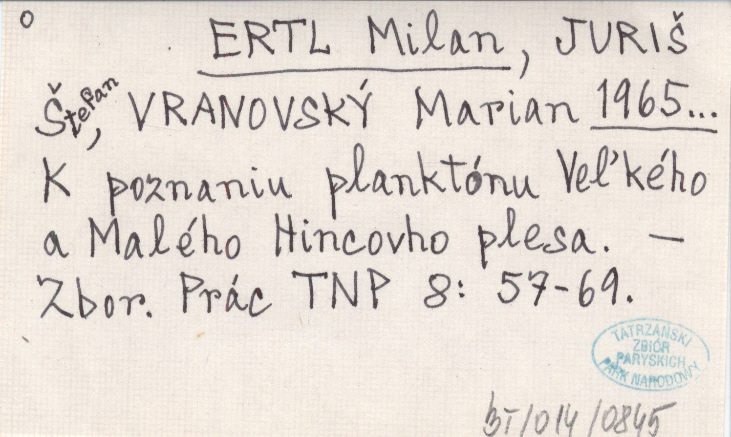 K poznaniu planktónu Ve”kého a Malého Hincovho plesa.