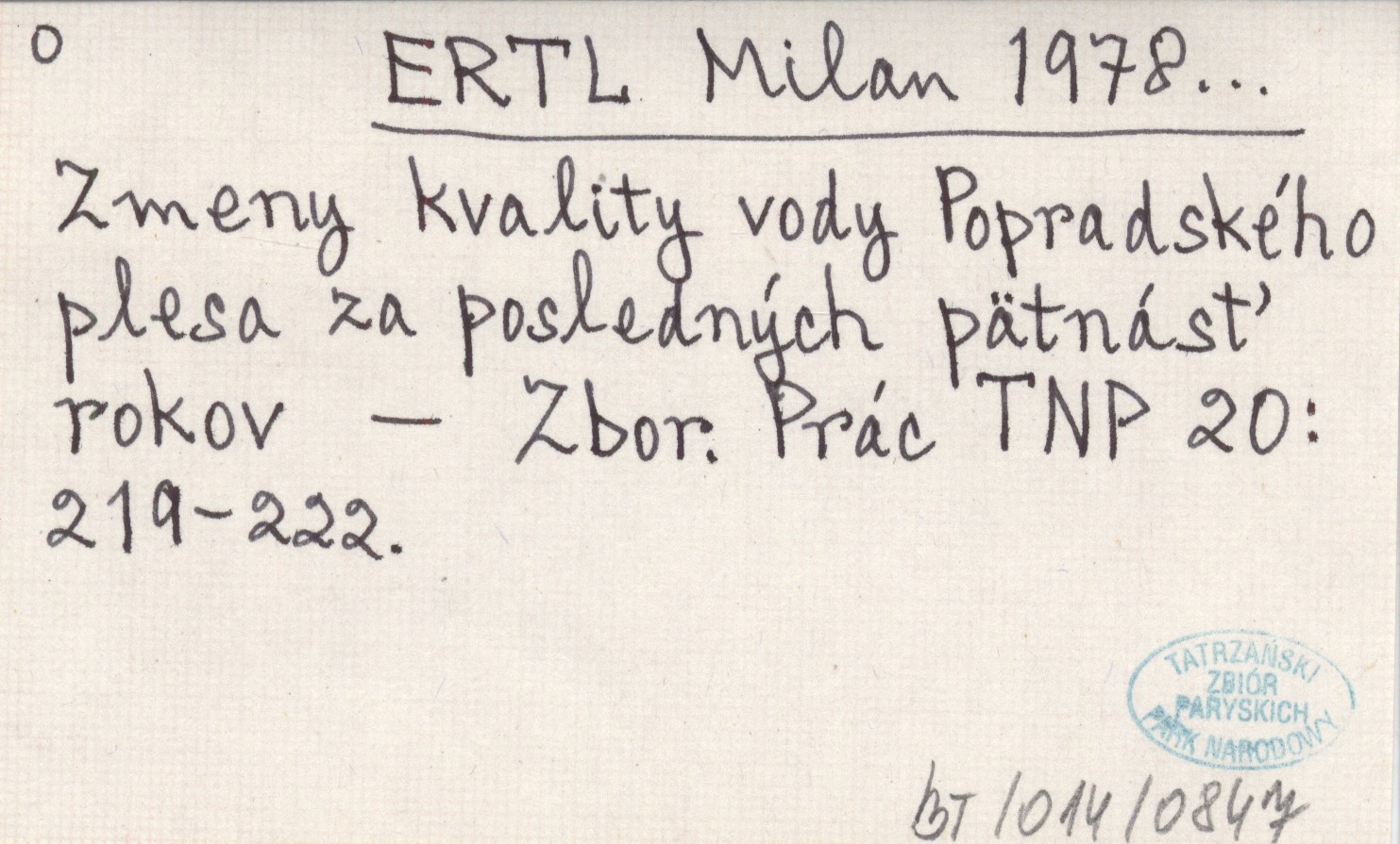 ERTL Milan 1978... Zmeny kvality vody Popradského plesa za posledných pätnásť rokov.