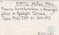 ERTL Milan 1982... Koreňonoľce (Rhiyopoda) rieky Belej.