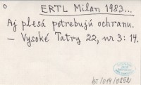 ERTLOVÁ Eva 1964... Príspevok k poznaniu zoobentosu Popradského plesa.