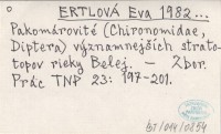 ERTLOVÁ Eva 1982... Pakomárovité (Chironomaidae, Diptera) významnejších stratotopov rieky Belej.