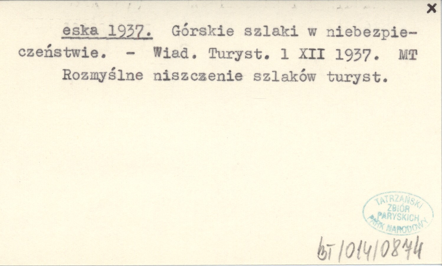 Wiadomości Turystyczne, 1 XII 1937. Rozmyślne niszczenie szlaków turystycznych.