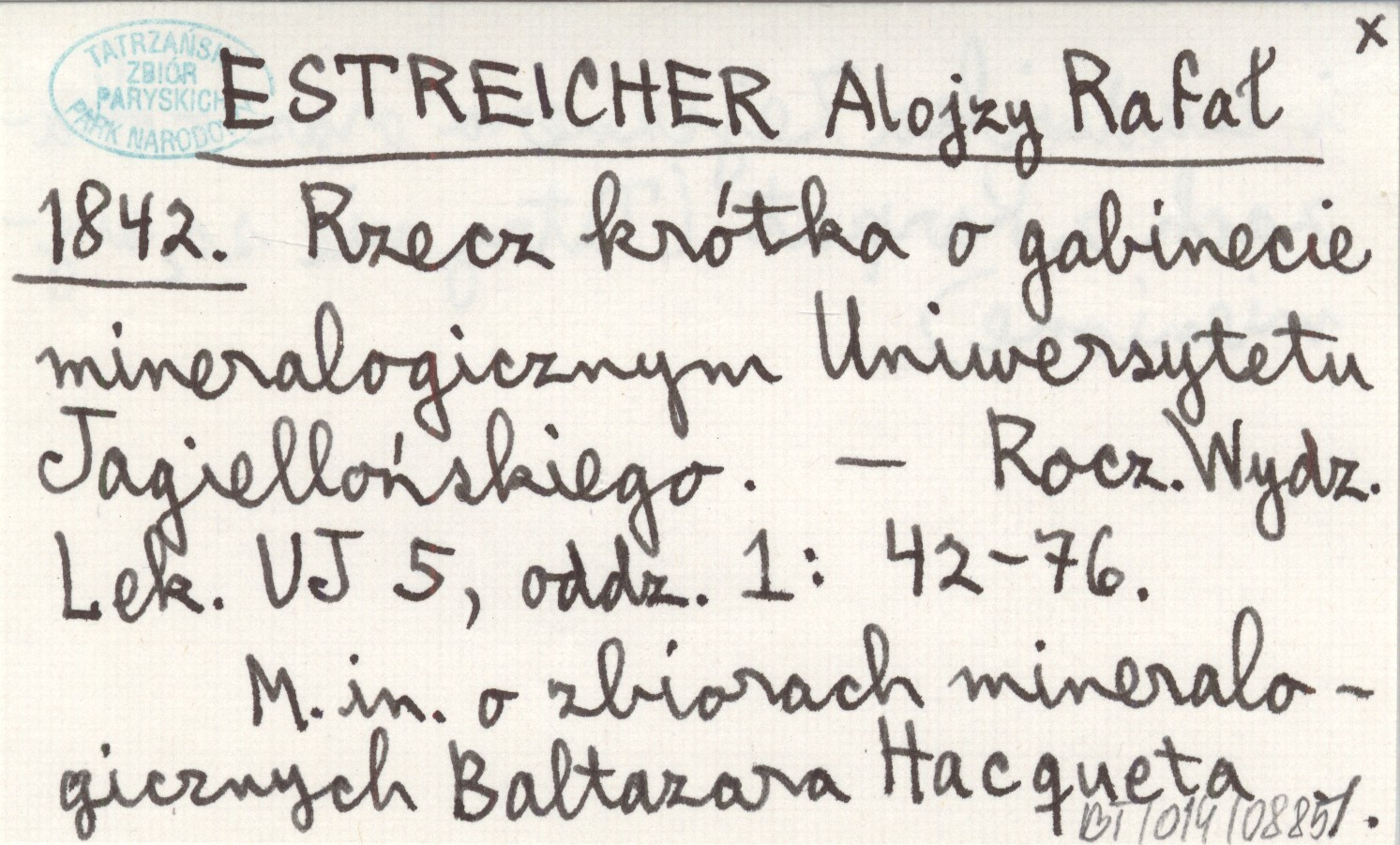 Rocznik Wydziału Lekarskiego UJ, 5, oddz. 1: 42-76. M. in. o zbiorach mineralogicznych Baltazara Hacqueta i Ludwika Zejsznera oraz o okazach z Karpat (Tatry nie są wymienione).